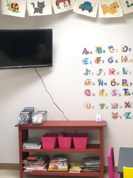 After completing the provisional project that created backpacks full of necessities for children in foster care, JSL saw a big need to improve the 3 visitation rooms at the Department of Family Protective Services. We wanted to create a happy, upbeat, inviting room for these important times for families. We pledged our fall pie sales fundraiser proceeds to do just that. With the funds raised we were able to paint the rooms, purchase new tvs, furniture, and decor. Gently used toys and books were donated to help fill the shelves and toy box.