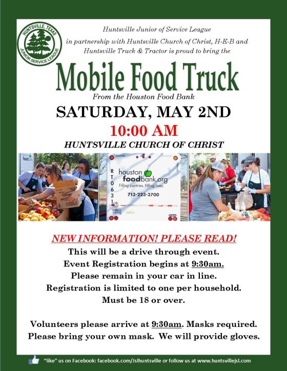 Due to the current virus situation, there are changes for our May 2nd food truck. PLEASE READ!